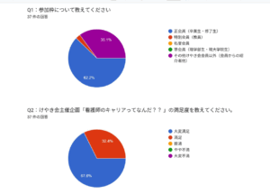 講演では、勝原先生ご自身の多彩な経験やキャリア支援の実践をもとに、「看護師のキャリアとは何か」について、温かく力強いメッセージを込めてお話しいただきました。「良い現象こそ共に振り返る」という視点をいただいたことで、あらためて自分の看護師としての在り方を見つめ直すことができました。今後は、うまくいった場面も積極的に振り返り、自分自身の強みや成長を実感しながら、それぞれの場で活かしていきたいと感じています。